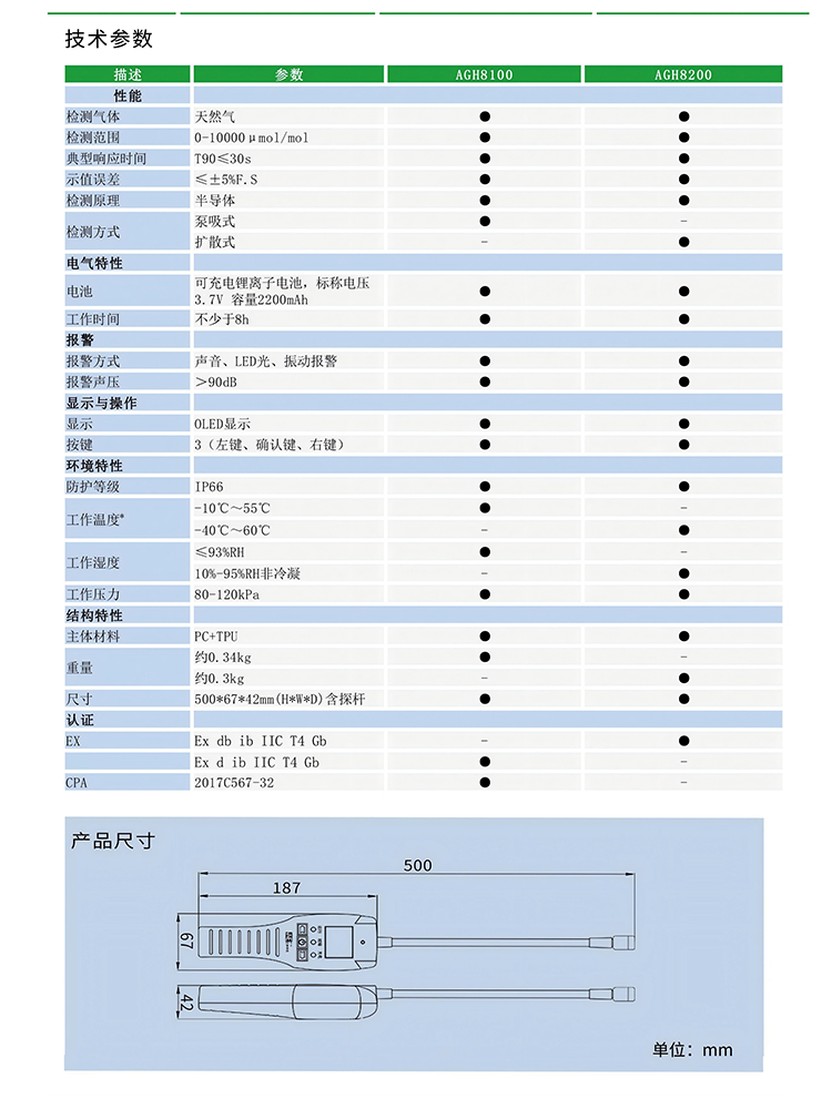 產品尺寸:500mm*67mm*42mm(含探桿)