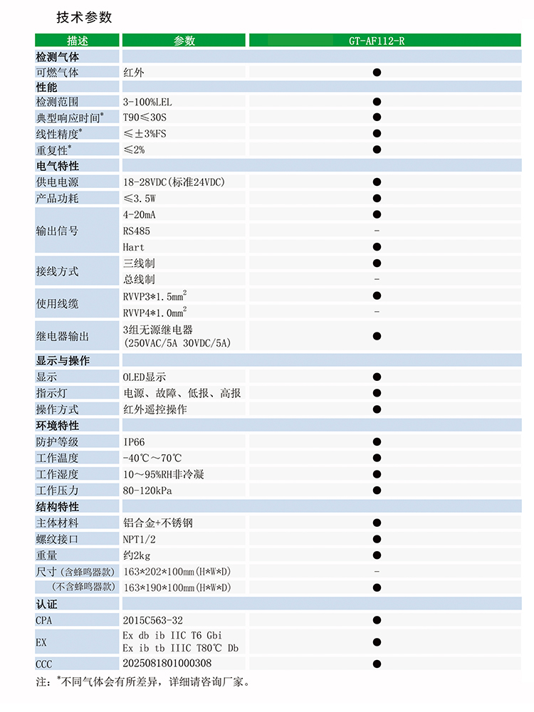 艾伊利技GT-AF112-R型工業及商業用途點型可燃氣體探測器采用紅外原理傳感器,可彌補健化燃燒原理易中